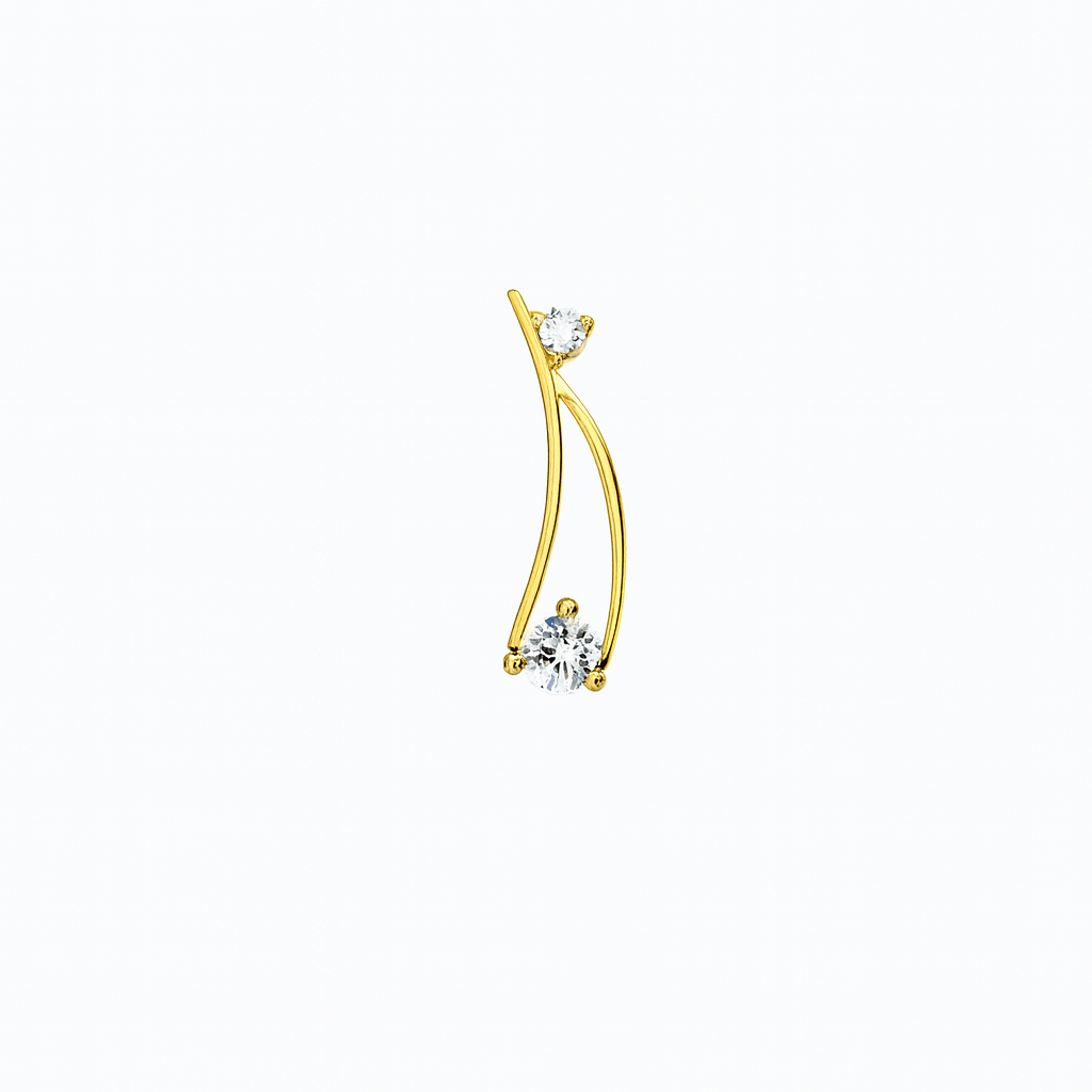 Vackert hängsmycke i 18k guld. Ett genombrutet design med två glittrande cubic zirconia stenar, en mindre upptill och lite större nertill.