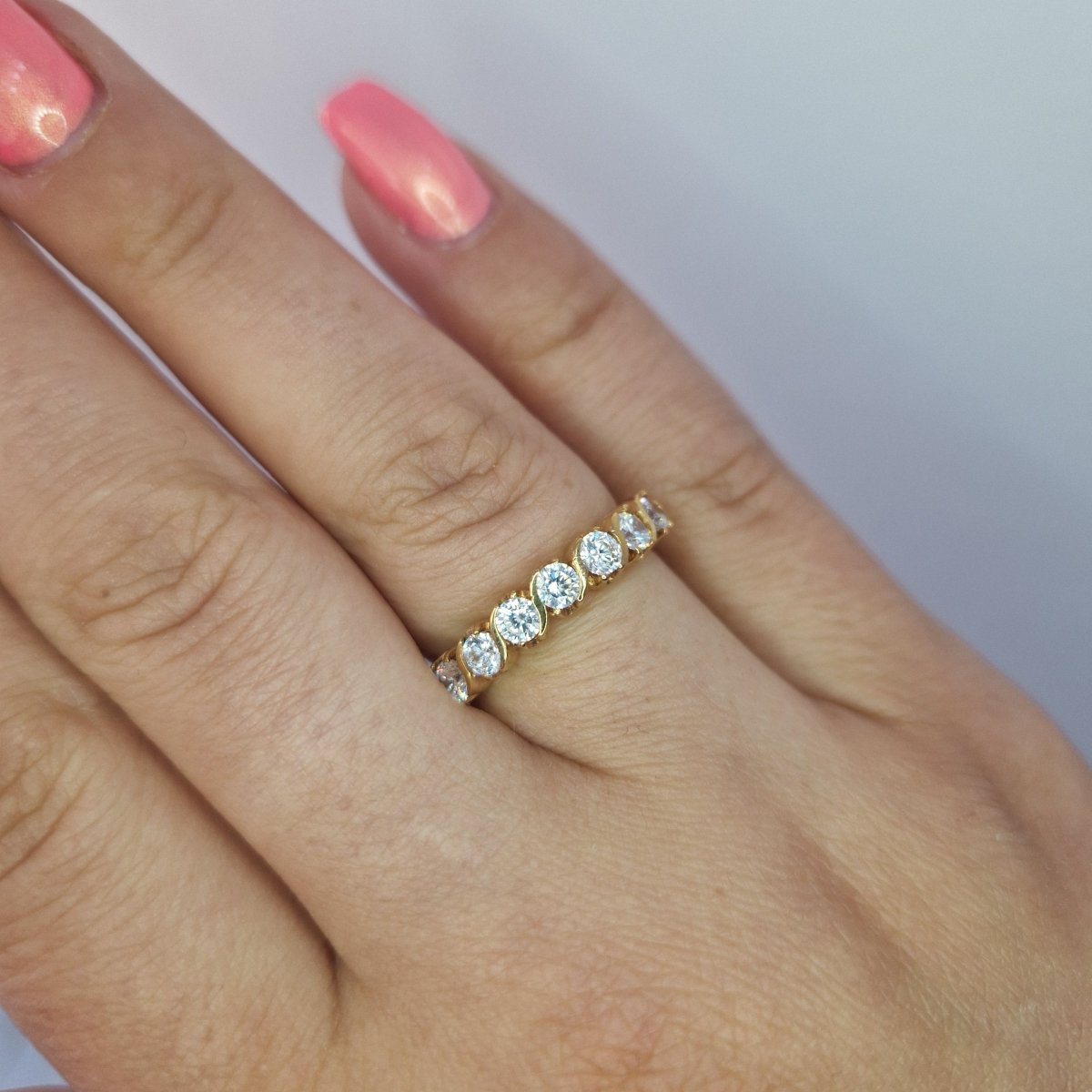 Tillverkad i 18k guld, Infattad med sju cubic zirkonia.