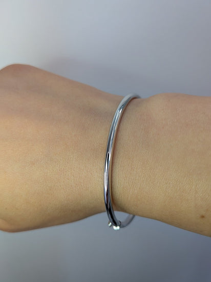 Stelt armband tillverkat i äkta vitguld. Rund och blank i modellen. Sitter väldigt fint på och passar till alla tillfällen. Öppningsbart.