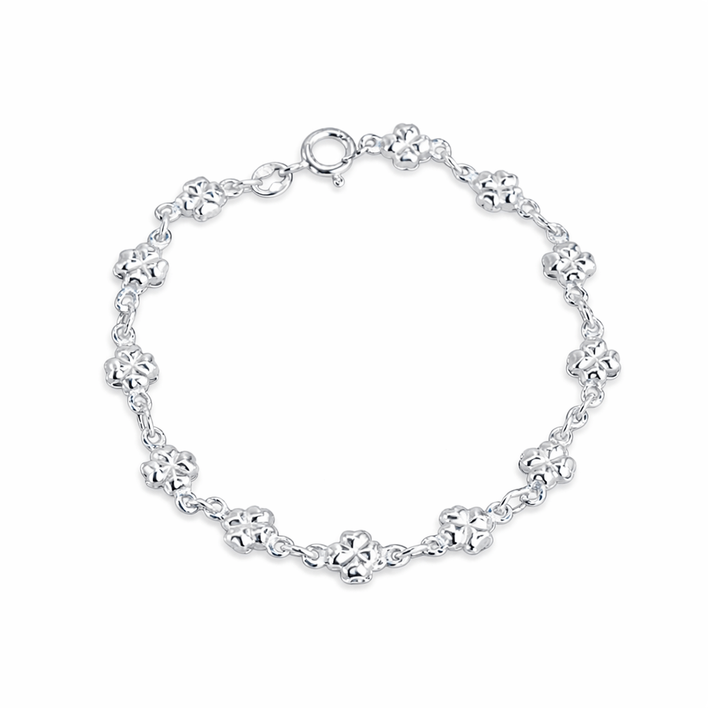 Barn armband i äkta silver. Fina bulliga fyrklöver. Blank design. Fyrklöver bringar tur.
