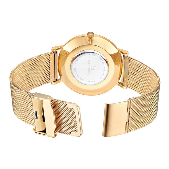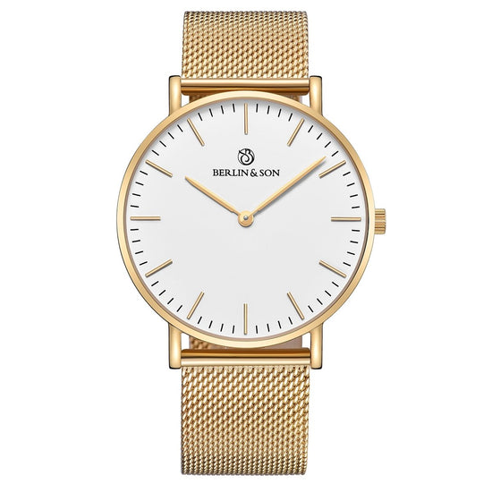 Berlin & Son är Klock märket för dig som uppskattar ren skandinavisk design och pålitlig schweizisk kvalitet. Unisex klocka. Vit urtavla, guldfärgad länk och detaljer.