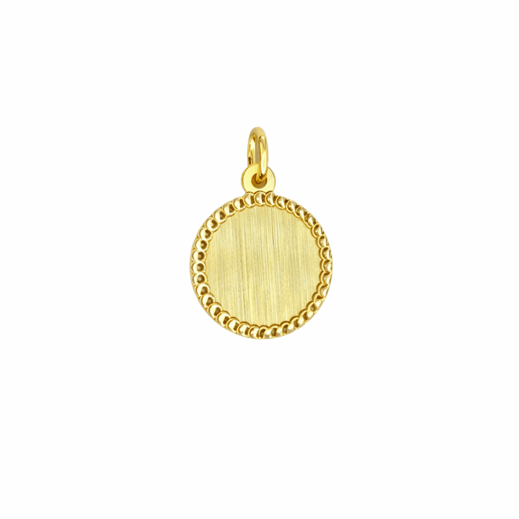 Rund gravyr bricka i silver 925. Guldpläterad, matt med facetterade kanter. Gravera något personligt.