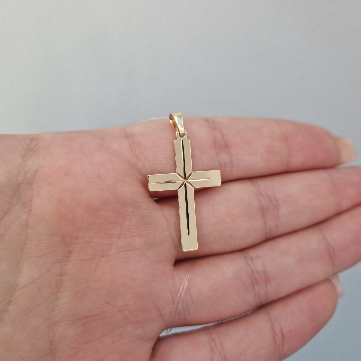 Kors Petrus i 18 karats guld med platt design och linjer. Ett stilrent kors som passar alla tillfällen.