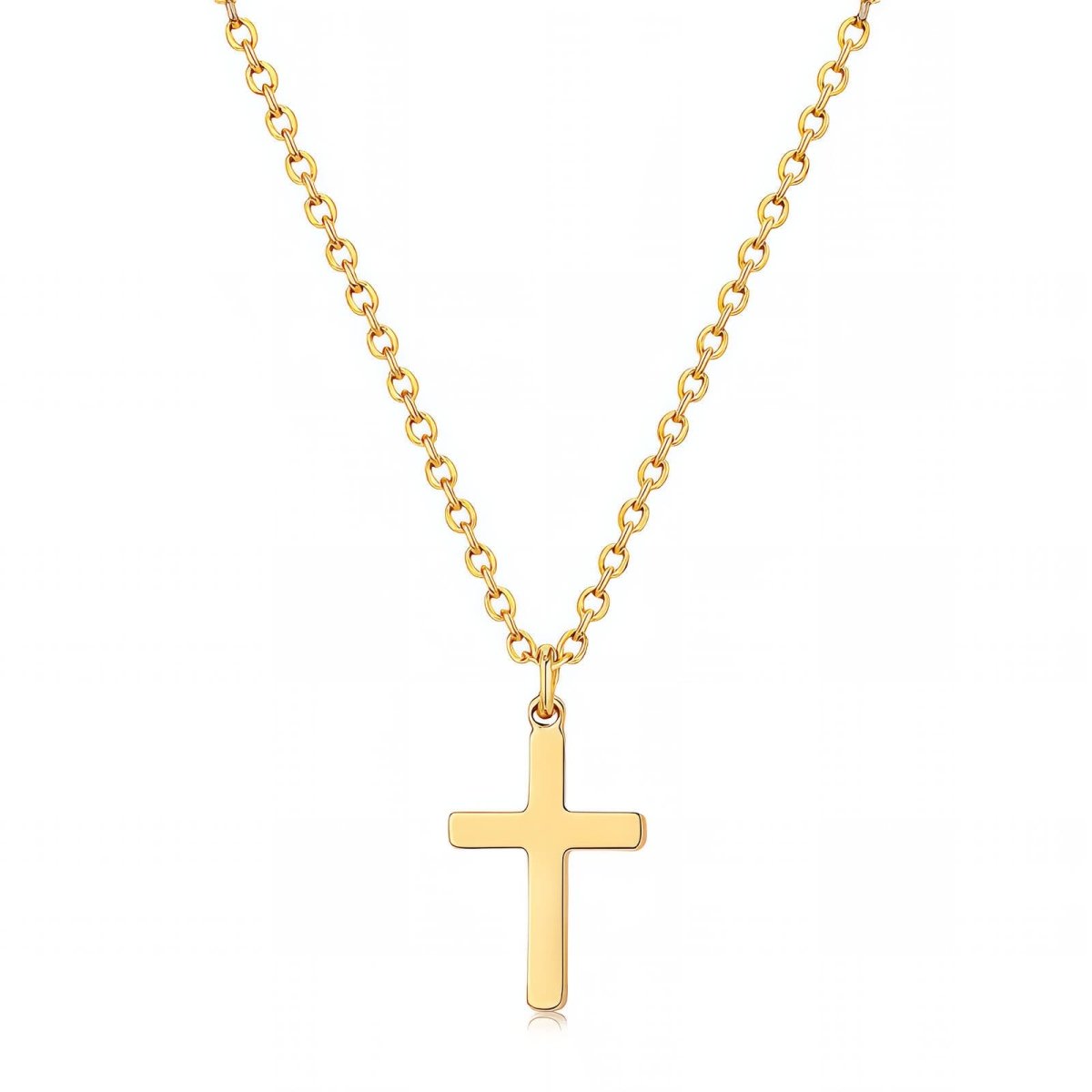 Halsband stilrent kors i rostfritt stål - 18k guldpläterad