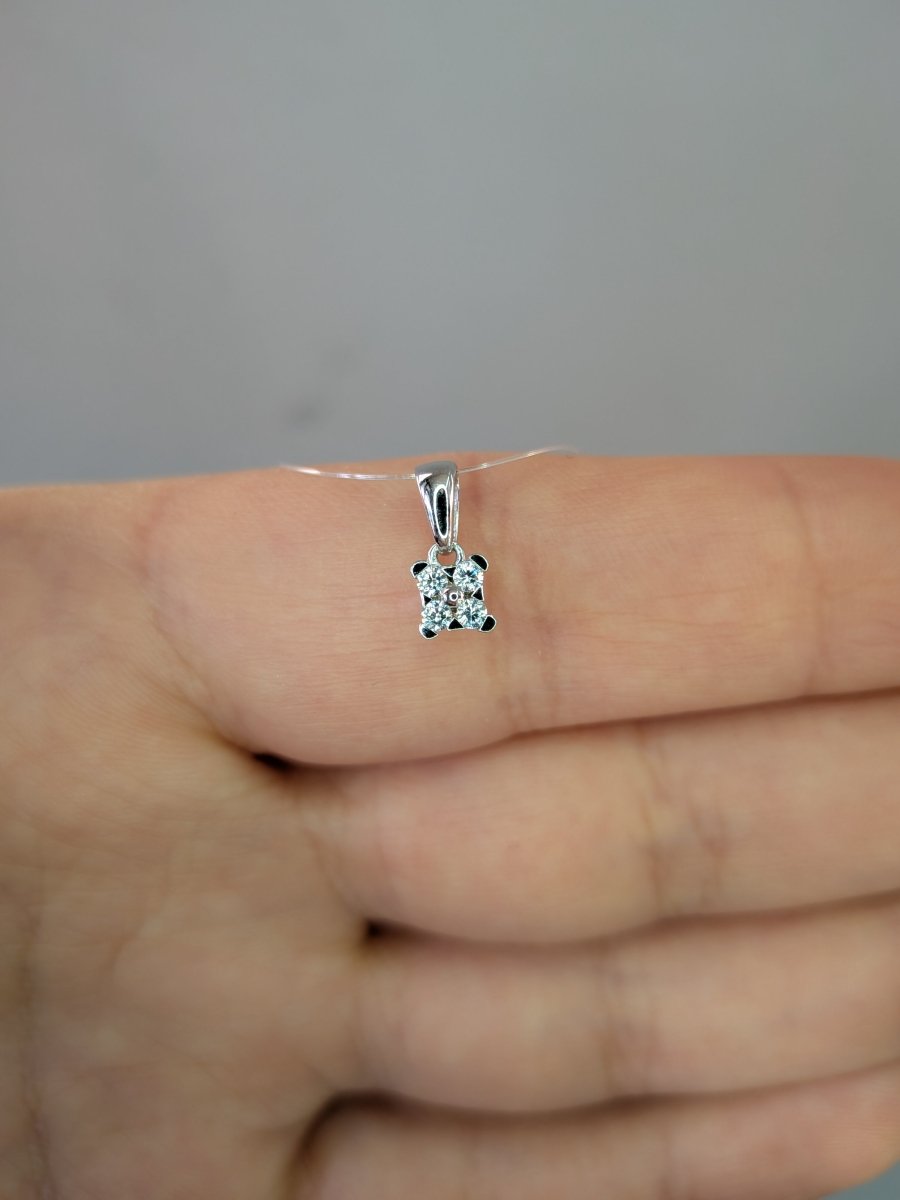 Hängsmycke i 18k vitguld. Blank design med fyra små glittrande cubic zirconia stenar som bildar en fyrkantig form.