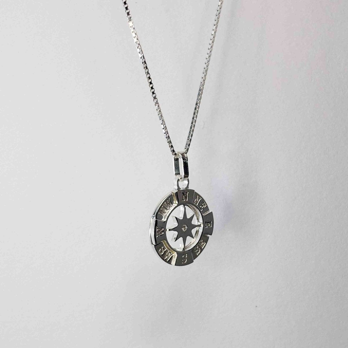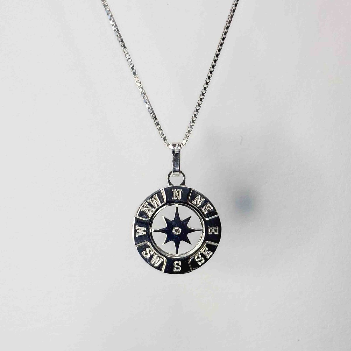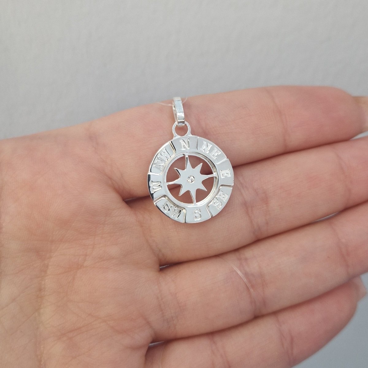 Hängsmycke kompass tillverkad i äkta sterling silver. Infattad med en vit cubic zirkonia sten.