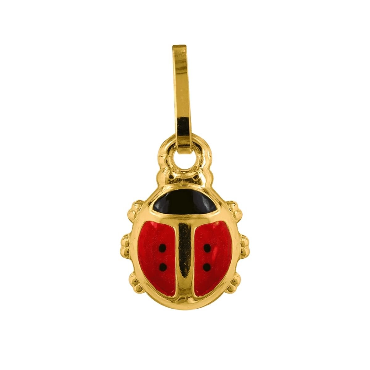 Hängsmycke i 18k guld. En söt nyckelpiga med färgglad emalj, i rött och svart färg.