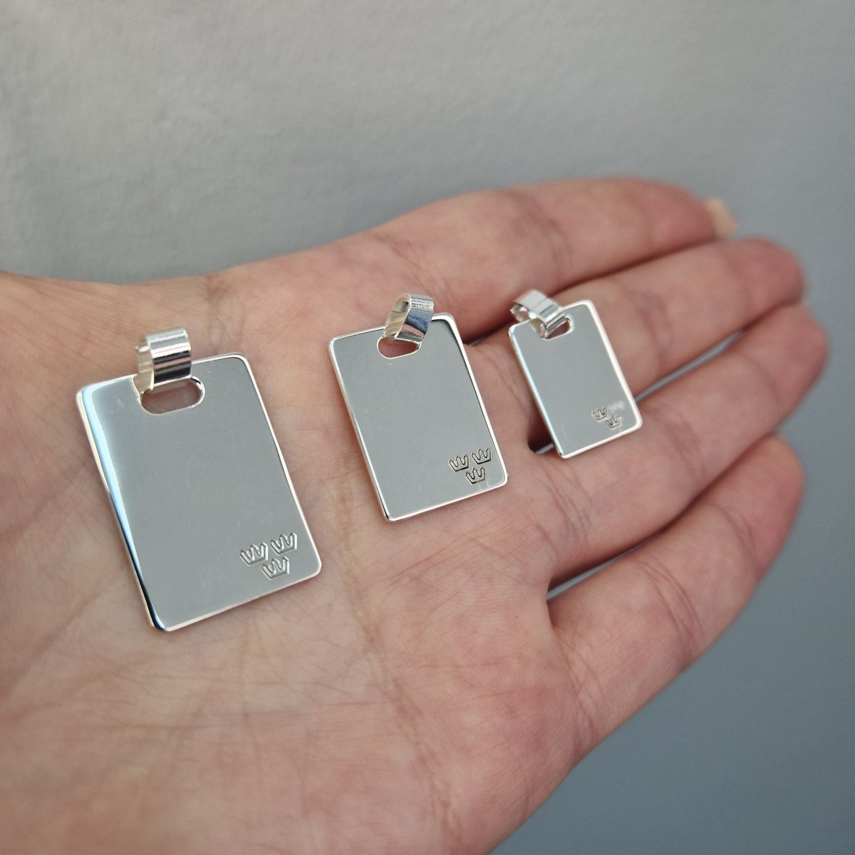 Hängsmycke tillverkad i äkta silver. Denna finns i tre lika storlekar. Välj din personliga gravyr.