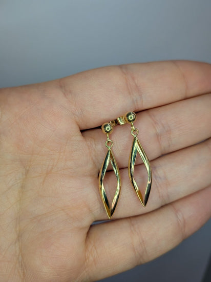 Vackra örhängen i 18 guld. Fin dropp formade design genombrutna. Blanka i modellen. Passar för alla tillfällen.