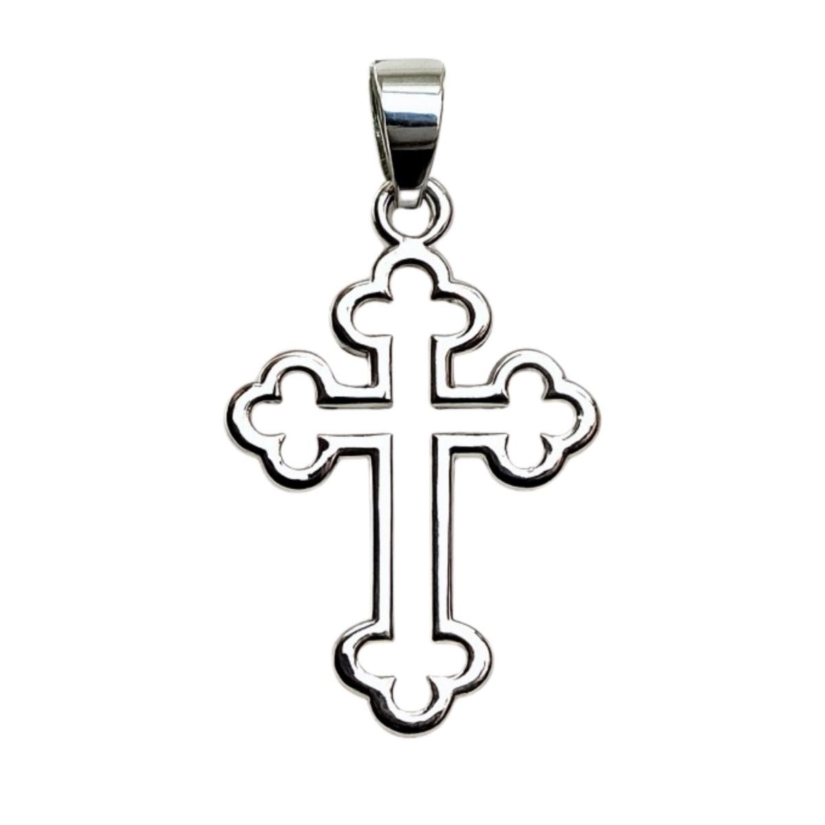 Genombrutet ortodoxt kors i äkta silver. Massivt och blank kors.