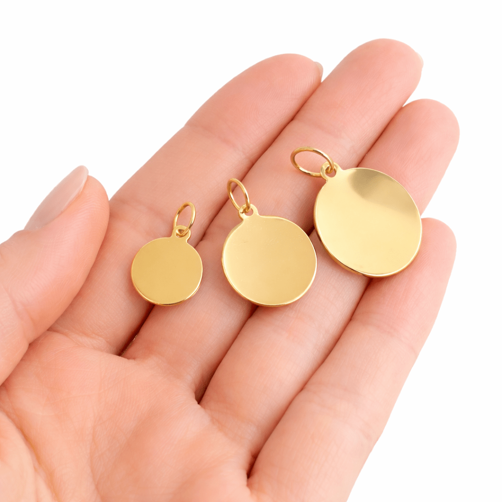Rondell i förgyllt silver 925 med slät och blankpolerad yta. Smycket är gravyrbart och kan göras personligt med önskad text.